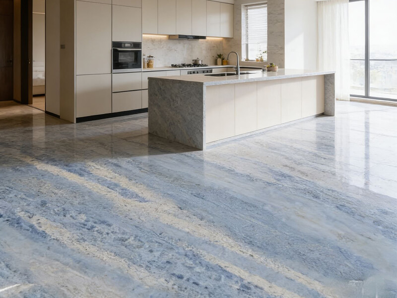 Blue Cristallo Quartzite is a Brazilian stone with crystalline blue patterns.It is a premium natural stone for stunning kitchen countertop quartzite and cristallo quartzite bathroom surfaces.