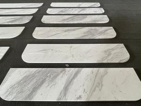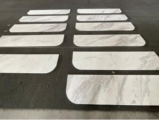 The visual appeal of these Cut-to-Size Marble units lies in their refined finish. Each piece features meticulously polished surfaces and softened radius corners, designed to bring a sense of "soft luxury" to any space. The rhythmic, flowing patterns of Volakas marble create a sense of movement, making it a preferred choice for high-end hospitality furniture, boutique office desks, and residential vanity tops. Whether you require specific dimensions for a furniture line or unique shapes for a custom build, our fabrication process ensures that the natural elegance of the stone is preserved in every cut.