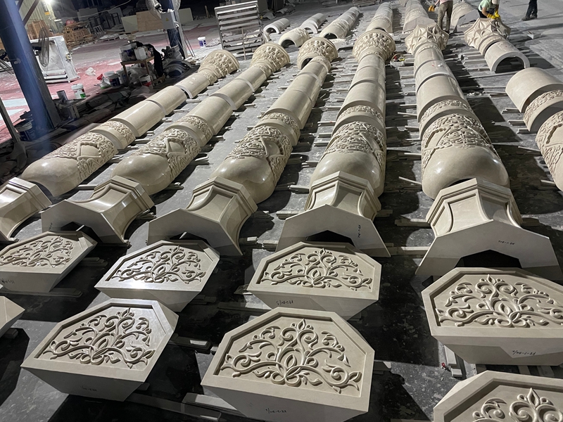 24 hours/7 daysThis project involves the fabrication of custom architectural columns made from White Rose Marble for a mosque building.