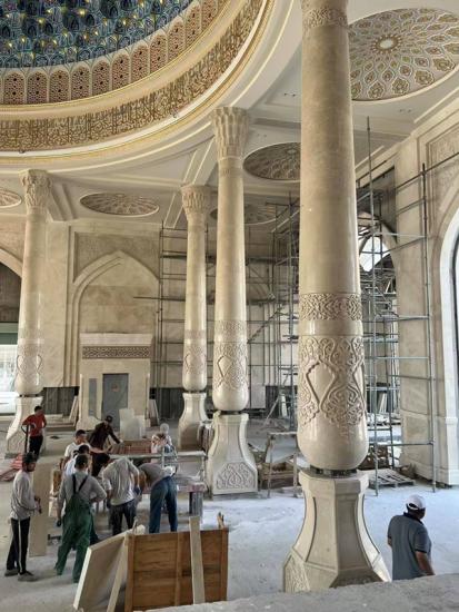This project demonstrates our capability in handling custom marble column fabrication for large-scale religious and architectural projects.