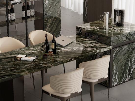Whether aiming for a warm and cozy aesthetic or a bold and dramatic color statement, Green Silk Quartzite offers options to meet diverse design visions and personalized needs.
