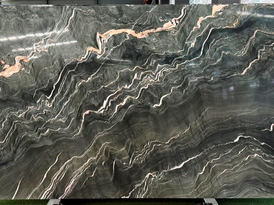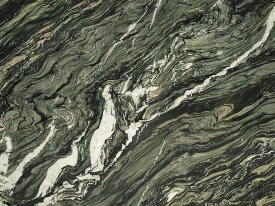 Green Silk Quartzite, also known as Green Fusion Quartzite or Green Silk Road Quartzite, is a natural stone highly sought after for its unique beauty. This stone features a green color palette with a rich range of tones, from light to dark green, sometimes with hints of blue. Its veining is highly variable, showcasing everything from bold, wild patterns to subtle, soft backgrounds, often interlaced with delicate hues of gold, brown, or grey. The overall appearance is elegant and distinctive, with a smooth, almost silky flow.