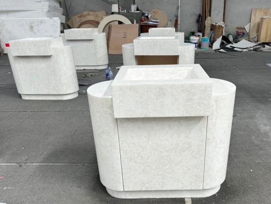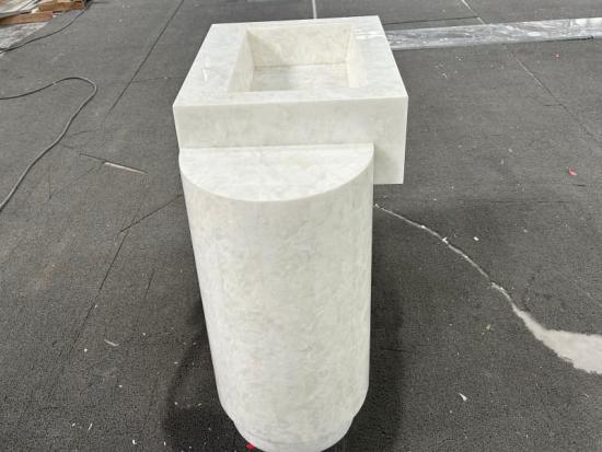 This light luxury Glacier White Onyx Curved Cabinet is meticulously crafted from carefully selected, high-quality natural white Glacier White Onyx. Each cabinet features a unique, delicate ice-cracked texture, perfectly blending understated luxury with natural artistry.