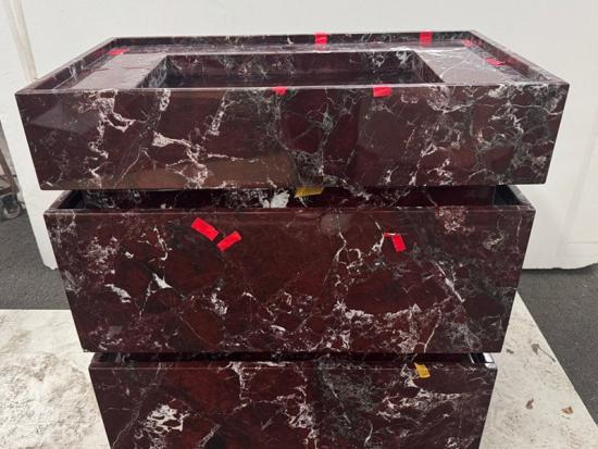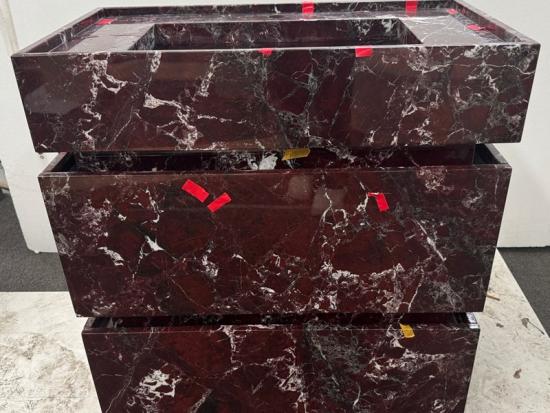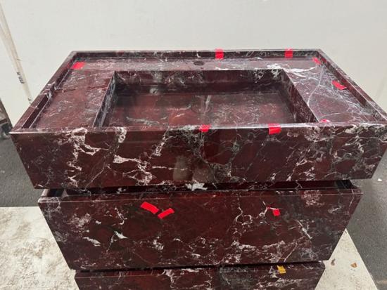 15-30 Days (Depends on project customization requirements)Transform your bathroom into a sanctuary of classical luxury with our Rosso Levanto marble integrated washbasin. Sourced from the finest quarries, Rosso Levanto is a prestigious natural marble celebrated for its deep, dramatic cherry-red to aubergine tones, interlaced with striking white and occasional subtle green veins. This intense coloration creates a bold, regal aesthetic that has been a staple of sophisticated design for centuries.