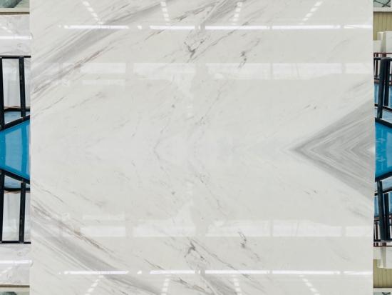 The visual profile of these slabs features a luminous, milky-white background that serves as a pristine canvas for its characteristic veining. Unlike more rigid stones, the veins in this Greek White Marble are gracefully diagonal, ranging from soft dove grey to deep charcoal. When arranged in a Symmetrical Veining layout, these natural lines converge to form an organic architectural statement. The inherent "softness" of the marble's palette provides a sense of expansive light, making it a favorite for designers aiming to achieve a high-end, airy atmosphere.